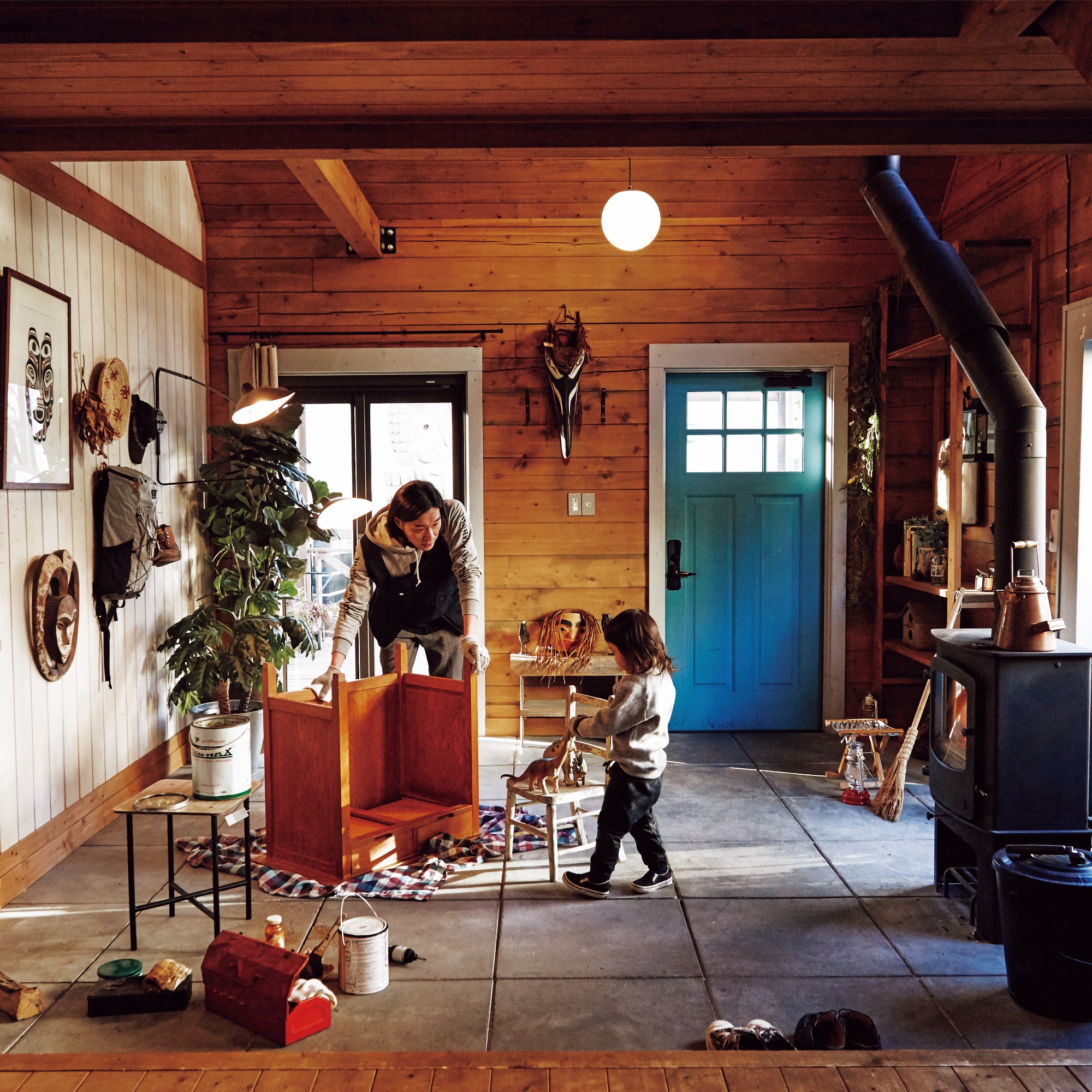 薪ストーブなど、効率だけを重視するより、家族がおおらかに暮らせる家づくりをしています。